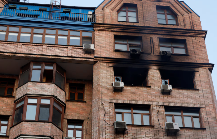Các vụ nổ làm rung chuyển nhiều khu vực của thủ đô Kyiv, phá hủy cửa kính, mặt tiền các tòa nhà cao tầng và thiêu rụi nhiều phương tiện. Một tòa nhà 8 tầng ở trung tâm thành phố bốc cháy dữ dội sau khi trúng mảnh vỡ từ tên lửa.